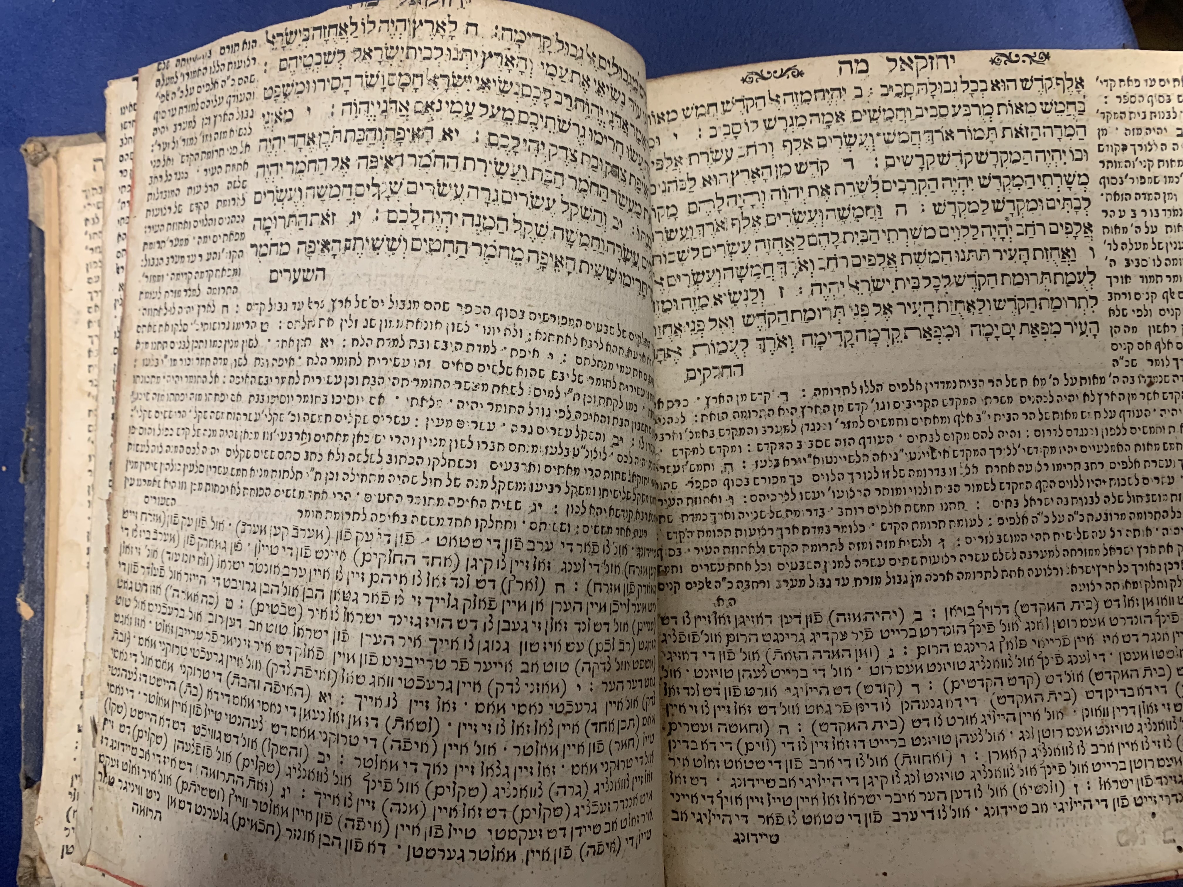The book\'s condition reflects its age and extensive use as a cherished communal or personal study text: