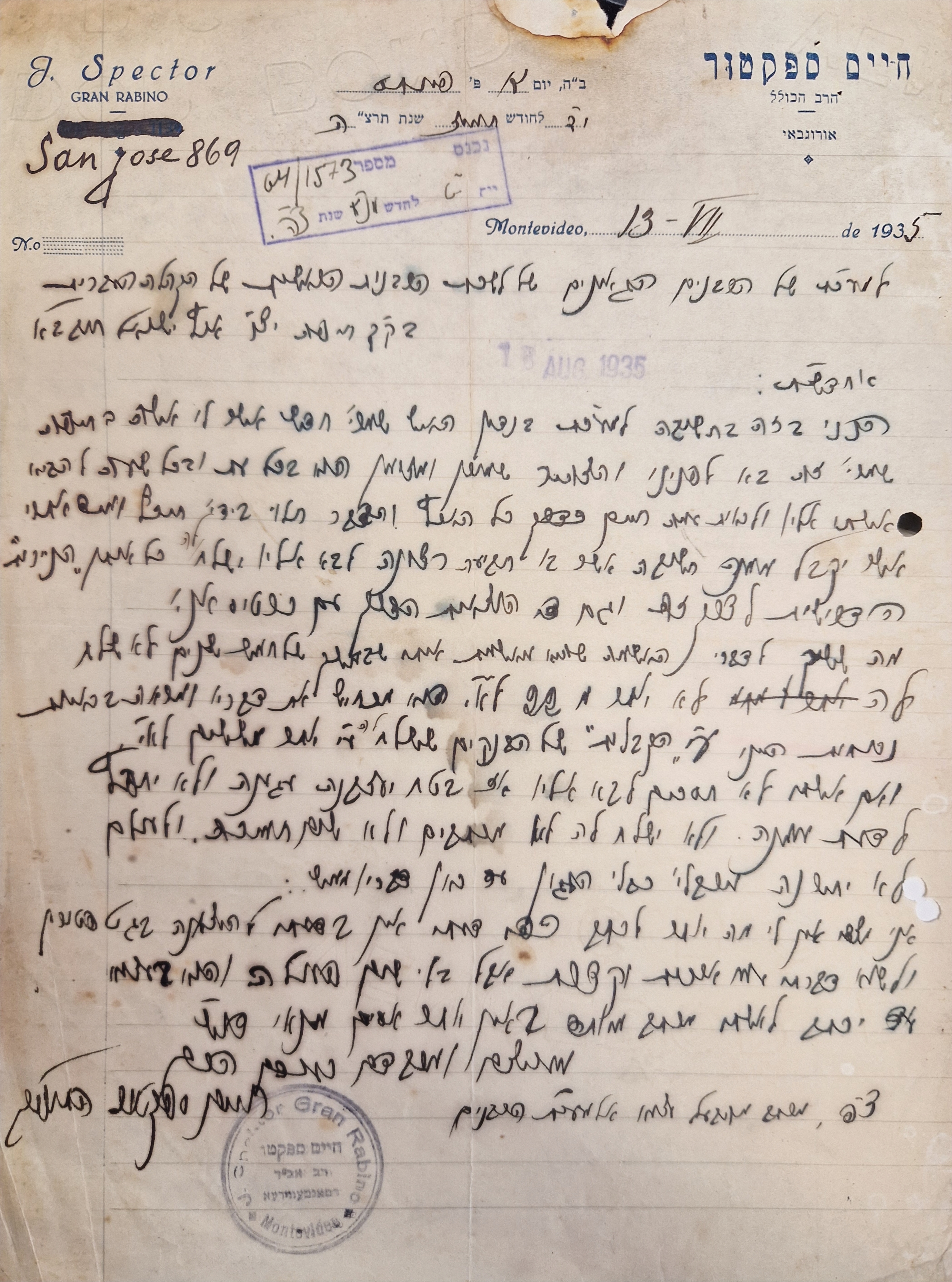 Letter from Rabbi Chaim Spector.