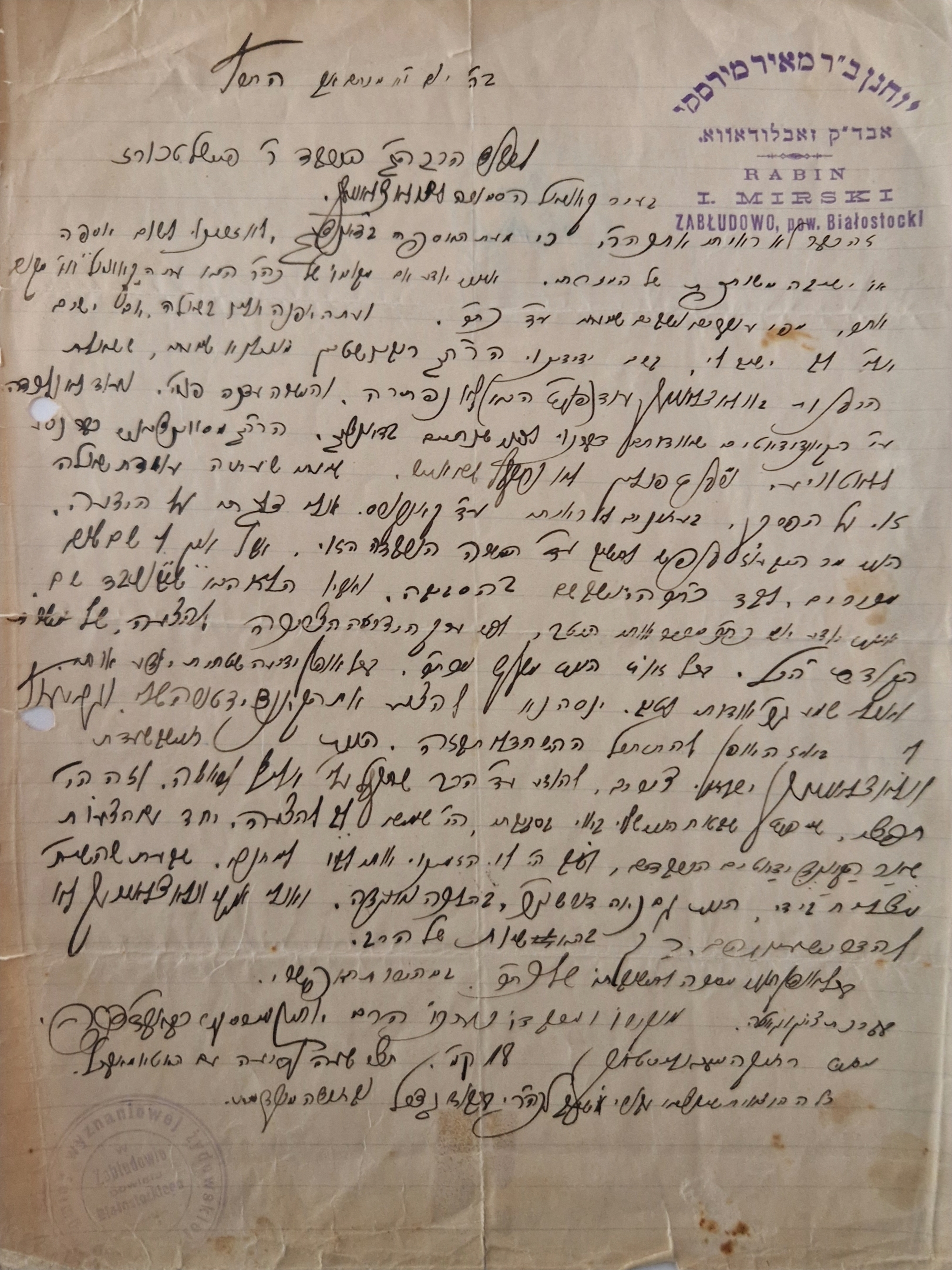 Rabbi Mirski was the last Rabbi of Zabludow, Poland and was killd in the Holocaust. His son in law, who served as Rabbi with him was rabbi Eliyahu Simcha Hazan, who was later a founder of yeshivas Mercaz HaTorah in Montreal and wrote Divrei Eliyahu on Rambam (5 volumes, first printed in 1965).