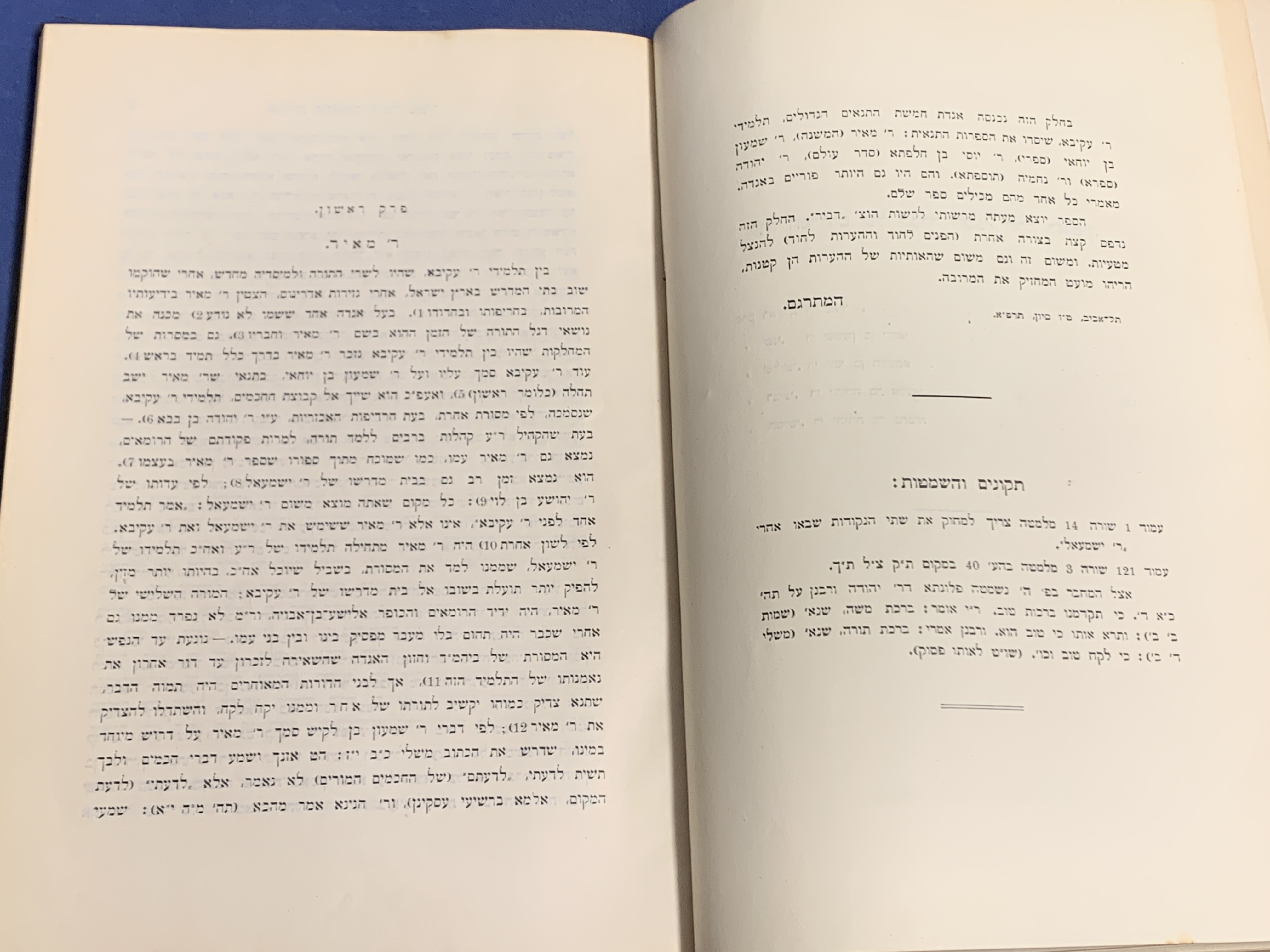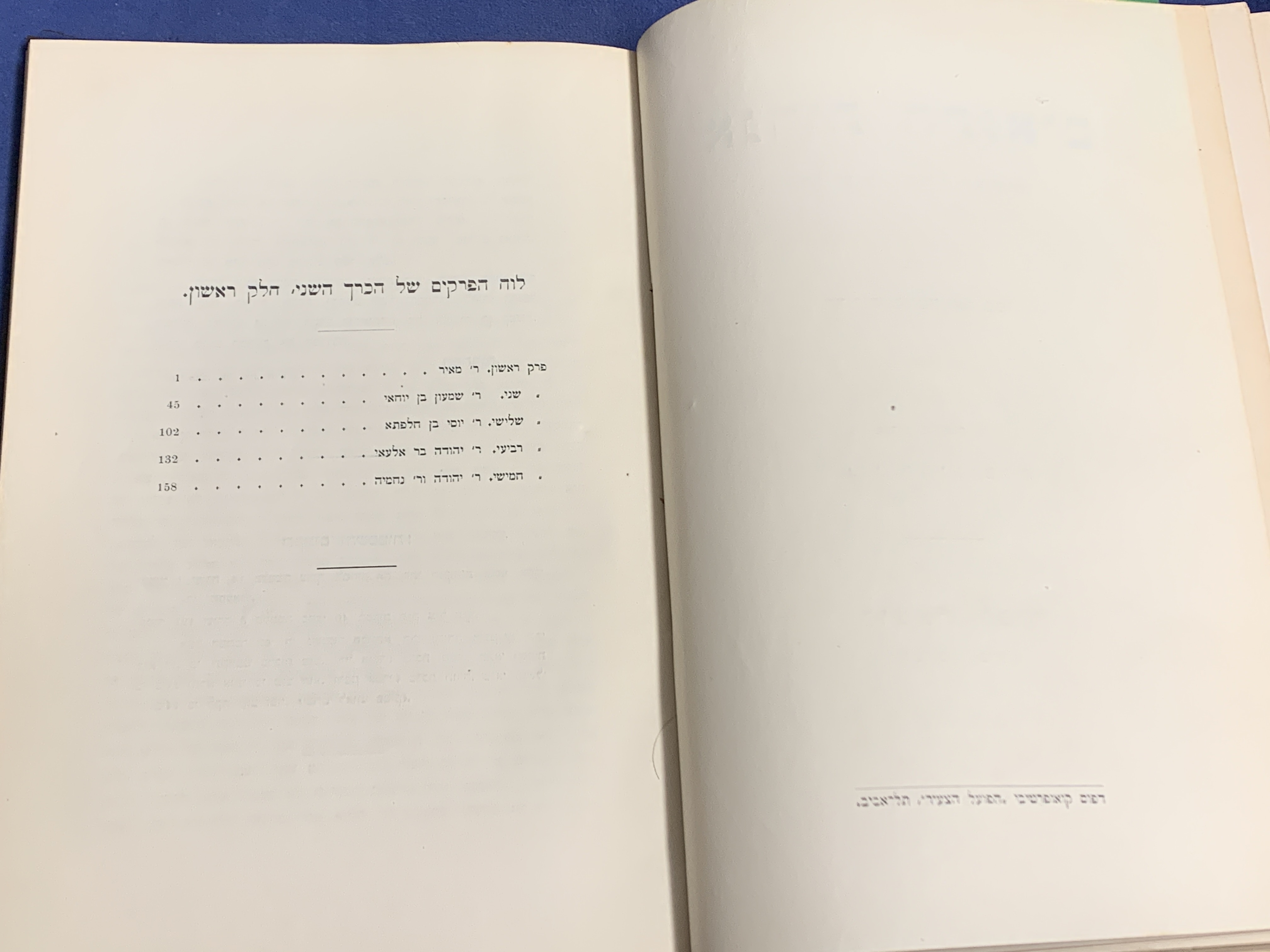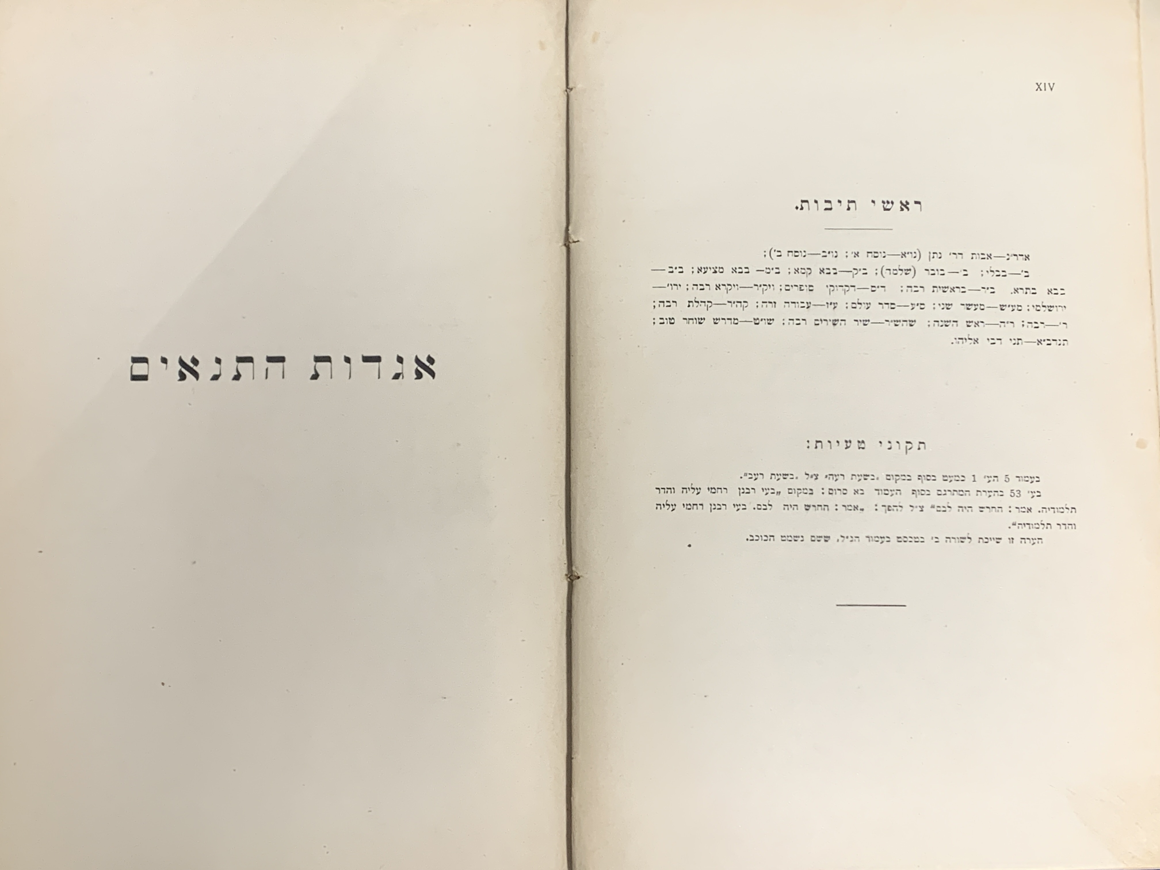 תיאור: כרך זה כולל את שני החלקים של הכרך הראשון של "אגדות התנאים" מאת בנימין זאב בכר, הכרוכים יחד. לכל חלק דף שער פנימי משלו.