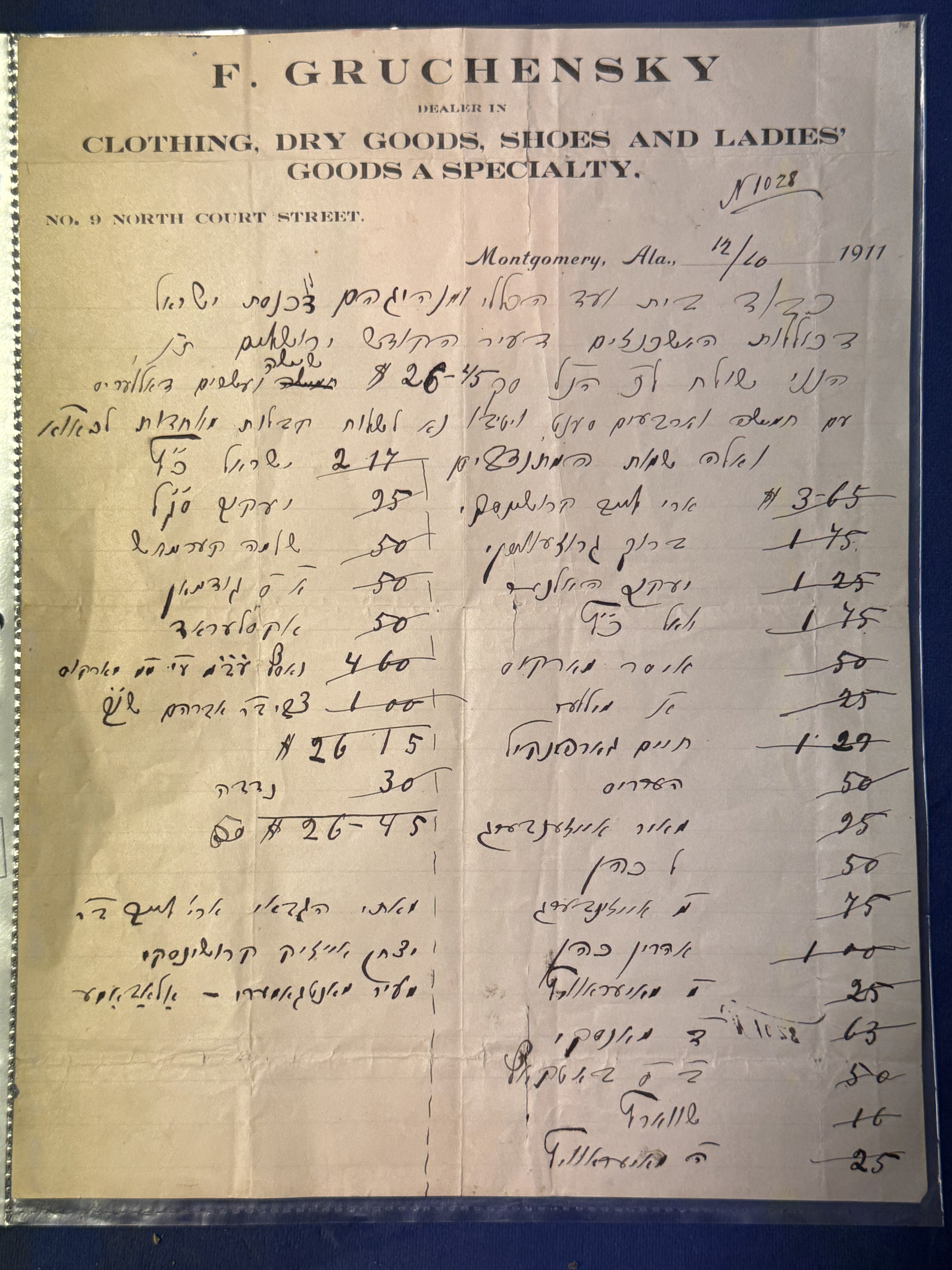 • Rev. S.M. Marcus ($4.60 collected via "Yosef…") – Likely Rev. Samuel M. Marcus, a known religious functionary (Shochet and Mohel) who served the Montgomery community. ס"מ מרקוס (4.60 דולר) – ככל הנראה הרֶוורֶנד שמואל מ. מרקוס, דמות דתית (שו"ב ומוהל) שפעל במונטגומרי.